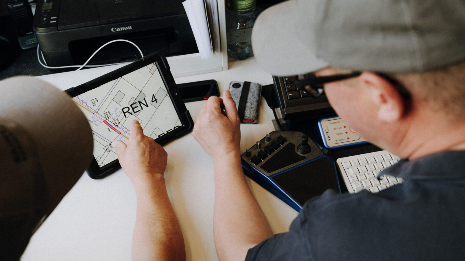 Bevor es losgeht, werfen wir noch einen Blick auf den Übersichtsplan und prüfen die Schachtzugänge. Je nach Schadensbild entscheiden wir dann, welches Werkzeug zum Einsatz kommt.